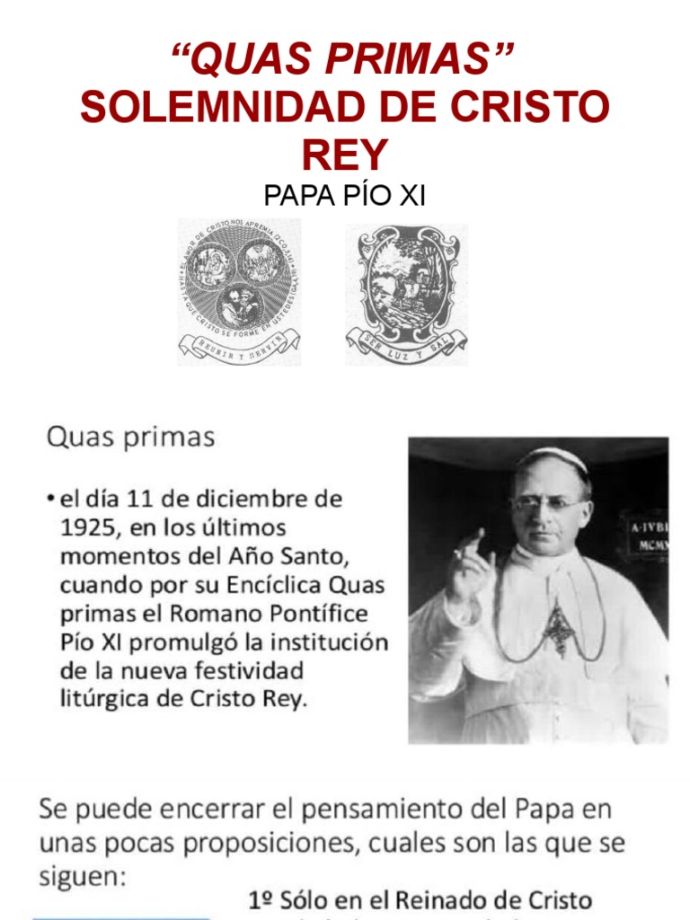 La Quas Primas è un'enciclica di papa Pio XI, promulgata l'11 dicembre 1925, sul tema della Regalità di Cristo. Con questa enciclica il Pontefice istituì la Solennità di Cristo Re.